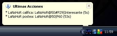 Todas las acciones que ocurran desde que ponemos el L85W en marcha tendrán un asterisco delante. Así por ejemplo, si lo lo arrancamos y tras esto, Gex postea y califica, y luego le decimos que nos muestre las últimas 5 actividades, las dos últimas tendrán un asterisco delante: